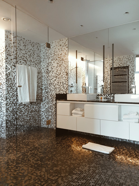 The hotel is discretely and elegantly merged into the streets of Vienna with its ground floor bar opening up to the public outside. A short walk away you find the grand doors of the main entrance which take you through to the main lobby area and the reception desk. We were impressed by the attention to detail of the interior and exterior facades and design. It was modern but also had an artistic feel. The staff were friendly and even though we arrived too early for check in, kept our bags safe and helped us to our room as soon as it was ready, offering us drinks in the bar/restaurant whilst we waited.