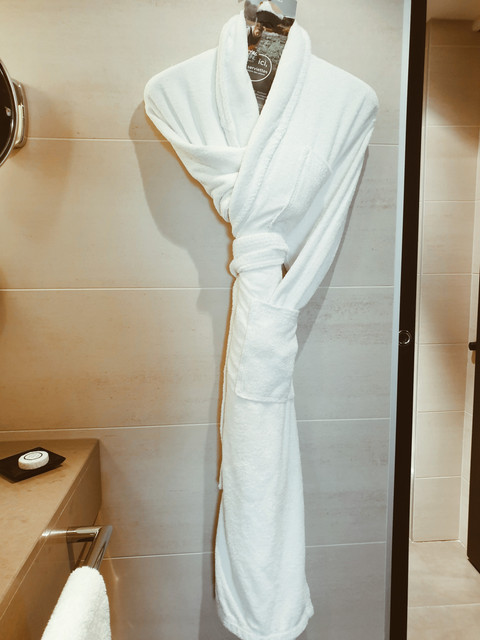 I also have to tell you about the bathroom… The bathroom was astonishingly comfortable. It had one of the most fantastic showers I have ever experienced! We had two sinks and a range of high class Hermes cosmetics for our ablutions. There was a separate toilet and shower area with its own blind system where you could let natural light or provide yourself with additional privacy. The shower was equipped with a multiple shower head system including a wall mounted spray shower, rainfall shower, and four vertical showerheads which could be orientated to target different areas of the torso. Total bliss!